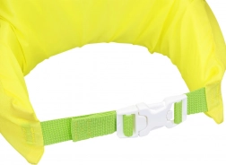 Masszív műanyag csat állítható pánttal, mely a háton záródik, így a gyermek nem tudja egyedül kioldani. Stabil és biztos illeszkedést nyújt játék és úszás közben.