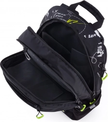 Az OXY Sport Graffiti hátizsák kiváló választás diákoknak és felnőtteknek egyaránt. Ergonomikusan formázott hát és állítható párnázott vállpántok biztosítják a kényelmes viselést egész nap. Praktikus mellkasi pánt hozzájárul a stabilitáshoz. Két fő rekesz és egy kisebb elülső zseb tartós cipzárakkal elegendő helyet biztosít tankönyvekhez és személyes tárgyakhoz.