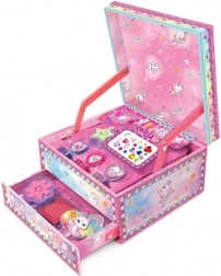 A Pecoware kreatív bélyegzőkészlet a balerina cicás motívummal örömet szerez a kis művészeknek. Az automatikusan kihúzódó fiókkal ellátott díszdoboz megkönnyíti a tárolást, és ideális eredeti ajándékként.