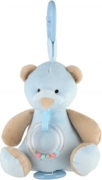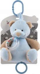 A bájos kék maci zenélő/csörgő elemmel és akasztóklippel otthon és útközben is megnyugtatja a babát. Pihe-puha, gyermekbiztonságos, és finom színei bármely babakelengyéhez illenek. Az átlátszó gyűrűben lévő gyöngyök hangingerlést biztosítanak, a klip könnyű rögzítést tesz lehetővé babakocsira vagy autósülésre, a kellemes plüss pedig segíti az elalvást.
