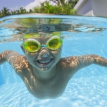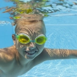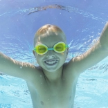 A polikarbonát lencsék UV-szűrője védi a gyermekek szemét a naptól, és tiszta látást biztosít a víz alatt.