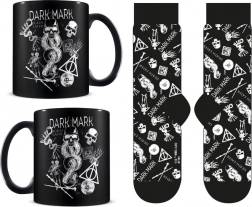 Lepd meg magad vagy szeretteidet ezzel a sötéten stílusos Dark Arts szettel a Harry Potter világából. Az ikonikus mintájú kerámia bögre ideális a mindennapi kávéhoz vagy teához, és a mosogatógépes tisztíthatóság, valamint a mikrohullámú melegítés gondtalan, praktikus használatot biztosít. Az univerzális, 41–45-ös méretű zokni a legtöbb férfinak megfelel, és egész napos kényelmet nyújt.