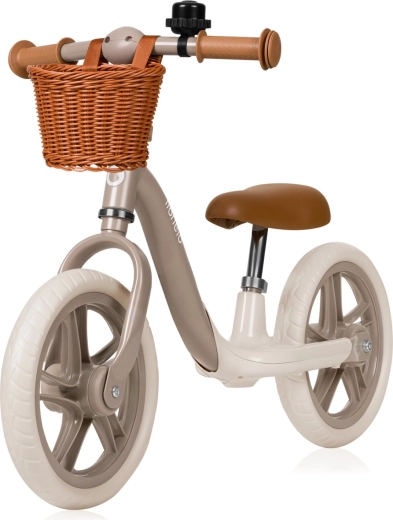 Alex Plus Bézs Homok gyermek futóbicikli a Lionelo-tól ideális választás a kicsik egyensúlyának és koordinációjának fejlesztésére. Biztonsági megoldásai és állíthatósága kényelmes és biztonságos utazást biztosít.