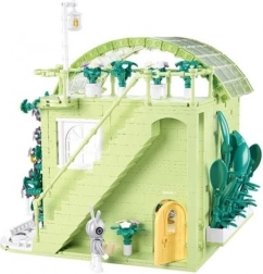 Lépcső, virágok, dekorációk és játékos elemek fejlesztik a képzelőerőt és a finommotorikát. Ideális építéshez, játékhoz és kiállításhoz.