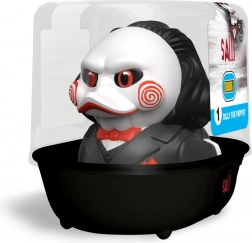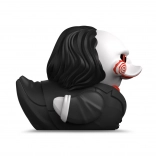 A 'Fűrész' című film ikonikus karaktere által inspirált kiskacsa, amely játékos dizájnt kombinál horror elemekkel.