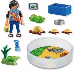 A PLAYMOBIL myLife terrárium teknősökkel valósághű környezetet kínál egy kis teknőscsalád számára. A gyerekek megtanulhatnak gondoskodni kedvenceikről – itatják őket a tálkából, salátát és száraztápot adnak, és páncélápoló szerrel kezelik a páncélt. A gondozó figurája levehető strandpapuccsal rendelkezik még több mókás jelenethez.