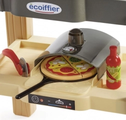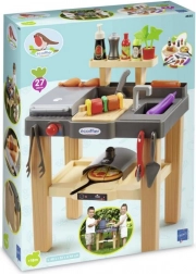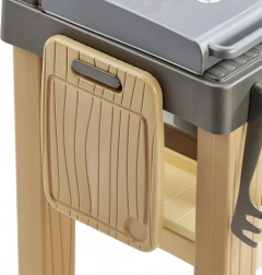 Praktikus felszereltsége magában foglalja a pizzasütő kemencét, a főző- és grillfelületet, a csaptelepes mosogatót és a vágódeszkát. A bőséges élelmiszer- és eszközkészlet végtelen játéklehetőséget kínál. Kompakt méretei 49 × 32 × 55 cm, így elfér a teraszon, az erkélyen és a gyerekszobában is.