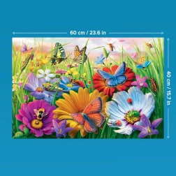 Merüljön el a színes, rovarokkal teli rét világában, és élvezze a kellemes pillanatokat egy generációkat összekötő kirakó mellett. A nagyobb elemeknek köszönhetően az összerakás kényelmes, gyors és áttekinthető, így a képet mindenki élvezheti – a gyerekektől a nagyszülőkig.