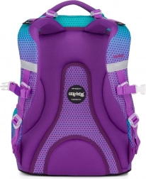 Stílusos Oxy Ombre iskolatáska 3. osztálytól, ergonomikusan formált hátkiképzéssel, párnázott pántokkal és állítható mellkaspánttal a maximális kényelemért. Két tágas rekesz, oldalsó zsebek kulacsnak, masszív alj és fényvisszaverő elemek teszik ideális választássá minden iskolai napra.