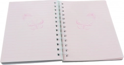 Különböző pasztell színek az 'Butterfly' mintával a borítón egyedi megjelenést adnak a jegyzetfüzetnek.