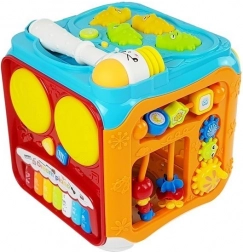 Interaktív oktató kocka változatos és magával ragadó szórakozást nyújt a gyermeked számára. A kocka minden oldala más-más funkcióval rendelkezik, amely lehetővé teszi a gyerekek számára az elemek áthelyezését, formák hozzárendelését, valamint játékot zenével és fényekkel. A hang- és fényhatások stimulálják az érzékelést és könnyítik a tanulást.