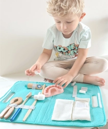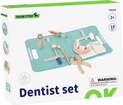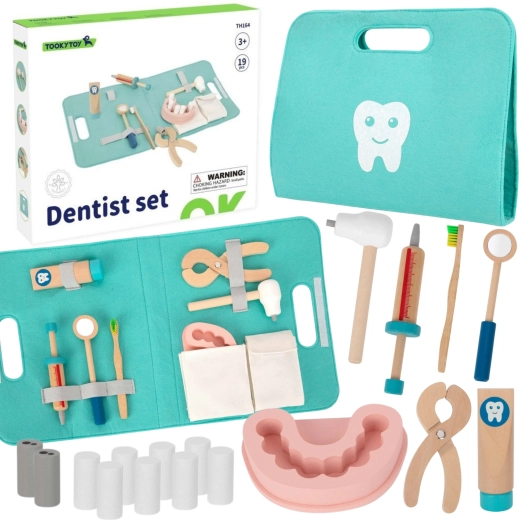 Fa készlet kis fogorvosoknak a Tooky Toy márkától, ami mindent tartalmaz, ami a fogorvosos játékhoz szükséges. A jövő orvosai injekciót adhatnak, fogat húzhatnak és ellenőrizhetik a pácienseik fogait. A fogorvosos játék nemcsak egy szerepjáték, hanem a dentális higiénia és hanyagolásának következményeinek oktatása is. Tanítja az empátiát és az együttérzést, ami nagyon fontos a szociális kapcsolatokban. Fejleszti a képzeletet és problémamegoldásra tanít.