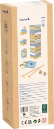 A kockák minőségi fából készülnek és nem mérgező festékekkel vannak színezve. A játék kellemes tapintású, masszív és ideális a gyerekkezekhez.