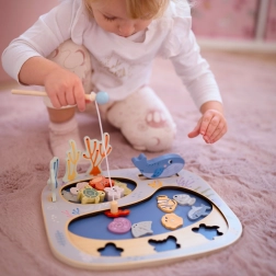 A Tooky Toy horgászó játék nemcsak a hagyományos horgászást kínálja, hanem különféle kreatív tevékenységeket is a gyerekek számára. Induljon felfedező útra a rejtett lények megtalálására, melyek az egyik sziklás medencében rejtőzhetnek a táblán. A játék fejleszti a gyerekek készségeit, mint a finom motorika és a kéz-szem koordináció. A tömör fa szerkezet FSC tanúsítvánnyal és nem mérgező festékekkel biztonságossá teszi 3 éves korból.</p>