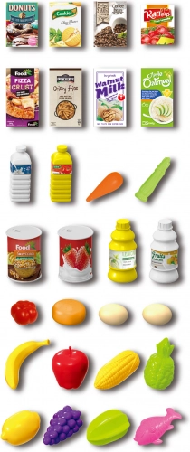 - Komplett készlet: 56 darab élelmiszer a valósághű játékhoz.