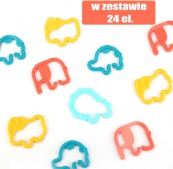 A WOOPIE márka színes, állatformájú függeszthető láncszemei remek játékkellékek már születéstől. A gyerekek könnyedén összekapcsolják őket lánccá, rögzítik a kedvenc játékokhoz vagy a babakocsihoz, és puha rágókaként is használhatják. A 24 darabos, 4-féle formát tartalmazó készlet fejleszti a finommotorikát, a kéz–szem koordinációt és a kreativitást, és univerzális rögzítésének köszönhetően babakocsira, pihenőszékre és autósülésre is alkalmas.
