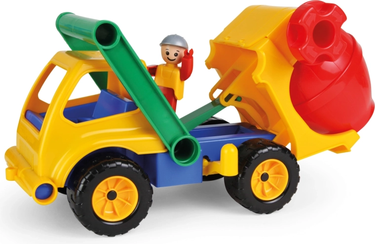 Ez a masszív és biztonságos műanyag betonkeverő ideális a kis építőknek. A forgatható és billenthető dob élethűen utánozza a valódi gépet, és órákon át tartó szórakozást nyújt a homokozóban vagy otthon. A minőségi anyag rugalmas és tartós, ami hosszú élettartamot biztosít.