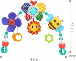 WOOPIE játékív úgy lett kialakítva, hogy szórakozást és fejlődést nyújtson a gyermekeknek. Az ív tartalmaz különféle játékokat, mint például a katicás szélforgó, amely forog és rezeg mozgás közben, sípoló napocska nyomásra, csörgő lepke átlátszó gömbbel, amelyben ugráló színes golyócskák vannak, valamint zörgő anyagok, amelyek gazdagítják a gyermek érzékszervi élményét.