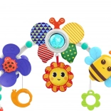 Különböző textúrájú és funkciójú játékokat tartalmaz, amelyek támogatják az érzékszervi fejlődést.