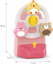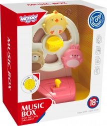 A csibe, a nyuszi és a mackó indításkor forogni kezd, és a zenélő doboz kellemes dallamával kíséri a gyermeket. Szórakozás, amely serkenti a látást és a hallást.