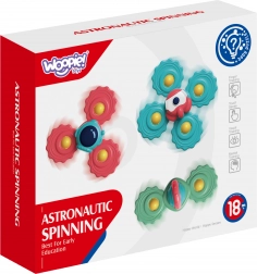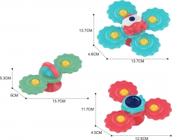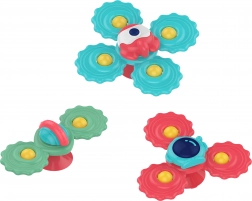 A Woopie márka 3 darab pörgő spinnerből álló készlete interaktív, színes játék a gyermekének. Mindegyik játék más és 2, 3 vagy 4 karral rendelkezik. Sima felületekre rögzíthetők, ami növeli a játék lehetőségeit. A biztonságos anyagoknak köszönhetően a játék rágókaként is szolgálhat a babának. A különböző kiemelkedő és süllyesztett elemek révén kiválóan stimulálja az érzékszerveket és fejleszti a gyermek finommotorikáját.