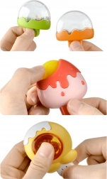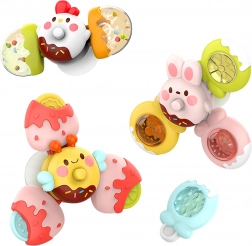 WOOPIE érzékszervi pörgettyűk minden gyermeket elbűvölnek. Ez a készlet 3 különböző pörgettyűt tartalmaz: méh, csibe és nyuszi, amelyeket a gyerekek gumis tapadókorongokkal sima felületre rögzíthetnek és bárhová magukkal vihetnek.