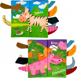 Az erdei állatok motívumával díszített szövetkönyv tökéletes első játék a legkisebbeknek. A susogó hatású, puha oldalak stimulálják a hallást, az élénk színek fejlesztik a látást, a kiálló farkincák pedig közvetlenül ösztönöznek a megfogásra. A gyerekek így természetes módon gyakorolják a finommotorikát és a kéz–szem koordinációt.