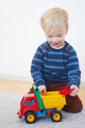 Fedezze fel a masszív gyerek billenőplatós teherautót, amely a vadabb játékot is bírja. Minőségi kivitelének és erős felépítésének köszönhetően napi használatra is alkalmas otthon, a kertben és a játszótéren. A mechanikus működtetés nem igényel elemet, és támogatja a gyerekek természetes fantáziáját.