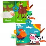 Játékosan fedezzétek fel az állatok világát. A könyvecske minden oldala más-más textúrát és zörgő hatást rejt, miközben puha farkincák állnak ki belőle, amelyek megfogásra csábítanak. A baba így természetes módon gyakorolja a finommotorikát, a kéz–szem koordinációt, és fejleszti a tapintást, hallást és látást.