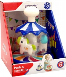 Vidám, színes körhinta lovacskákkal a WOOPIE márkától – tökéletes játék, amely felejthetetlen örömöt és fejlődést nyújt a gyermekeknek. A fehér gomb megnyomása után a bájos állatkák vidáman körbe-körbe forognak, mintha egy valódi körhinta miniatűr változata lenne. A játék már 6 hónapos kortól használható, így ideális ajándék a legkisebbeknek. A WOOPIE a magas minőségről és biztonságról ismert, ezért a szülők nyugodtak lehetnek, hogy a körhinta minden biztonsági szabványnak megfelel.