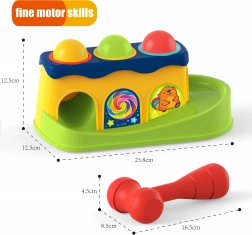 Ez a játék egyesíti a játékot és a tanulást a színes kalapács mechanizmussal, amely segíti a gyermekeknek a motoros képességek fejlesztését.