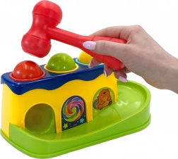 A kalapáccsal a gyerekek üthetik a golyókat, amelyek a pályán csúsznak le. A gyerekek követhetik, ahogy gördülnek, ami sok szórakozást nyújt nekik.