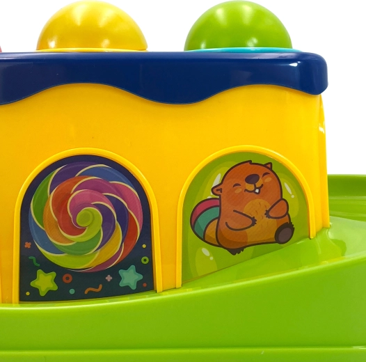 A kalapáccsal a gyerekek üthetik a golyókat, amelyek a pályán csúsznak le. A gyerekek követhetik, ahogy gördülnek, ami sok szórakozást nyújt nekik.