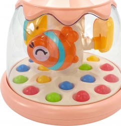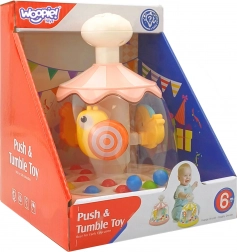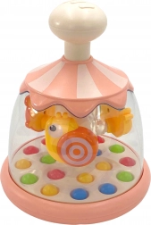 A WOOPIE márkájú vidám, rózsaszín, pörgő „bączek” állatkákkal már 6 hónapos kortól elbűvöli a babákat. A felső gomb megnyomására az állatok megpördülnek, a színes golyócskák pedig úgy ugrálnak, mint egy mini körhintán. A játék vizuális és hangingerlést nyújt, támogatja a finommotorikát és a kéz–szem koordinációt. Biztonságos és tartós anyagokból készült a nyugodt, mindennapos játékhoz.