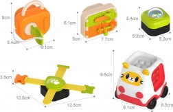 Szórakoztató és egyben fejlesztő játékot keres kisgyermekének? A Woopie baby montessori cicás autó változatos érzékszervi ingereket és okos feladatokat kínál a finommotorika gyakorlásához. Az elemek könnyen felcsatolhatók az autóra, így a gyermek a fantáziája szerint fedezhet fel és kombinálhat.