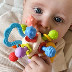 Kombinálja a rágóka és a csörgő tulajdonságait, különböző szórakozási módokat kínálva a gyerekeknek.