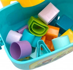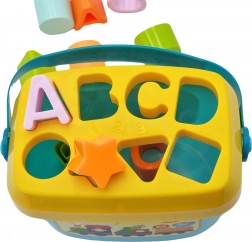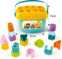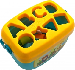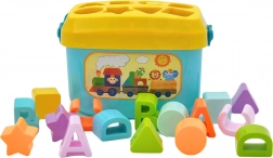 A fedél kivágásai betűkhöz, számokhoz és formákhoz ösztönzik a gyerekeket a megfelelő elemek párosítására. Fejleszti a szimbólumfelismerést, a színismeretet és a logikus gondolkodást.
