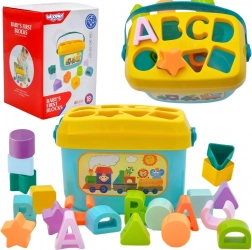 Az okos WOOPIE formaválogató egyesíti a szórakozást és a tanulást. A tartós műanyag doboz fedele betűk, számok és formák kivágásaival készteti a gyerekeket a megfelelő elemek párosítására és bedobására. A játék fejleszti a kéz–szem koordinációt, a türelmet és a térbeli képzelőerőt, miközben a színes elemek segítik a színek tanulását.