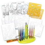 A DinosArt airbrush kifestő készlet ideális minden kis művész számára, aki szereti a dinoszauruszokat és a kreatív szórakozást. A készlet része egy elektromos szórópisztoly, egy USB kábellel ellátott töltőállomás és számos speciális filctoll és akvarell festék.
