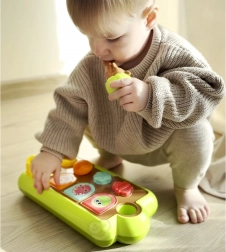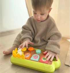 Fedezze fel az örömteli tanulást a WOOPIE BABY interaktív felbukkanó játékkal, ahol a különböző vezérlők aktiválására a rekeszekből aranyos állatok ugranak elő. A különféle vezérlési módoknak – kapcsoló, forgótárcsa és gombok – köszönhetően a gyerekek fejlesztik a finommotorikát, a ok-okozati összefüggések megértését és a érzékelést. A játék masszív, tartós, és része egy fa alakú síp is. Az állatok színváltozatai véletlenszerűen kerülnek kiküldésre.