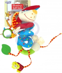 Ez a spirál alakú játék a látás, a hallás és a tapintás fejlesztésére készült.
