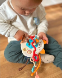 A WOOPIE, Montessori módszer által inspirált érzékszervi játék róka alakban ideális a legkisebbek fejlődésének támogatására. Ez az innovatív játék támogatja a motoros készségek és az érzékszervi észlelés fejlődését, miközben enyhülést nyújt a fogzás során. Színes és könnyen megfogható zsinórokat tartalmaz különböző textúrákkal, amelyek serkentik az aktivitást és a felfedezést.