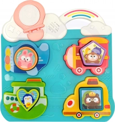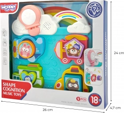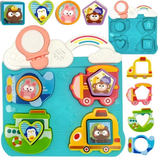 A játékos elemek, mint a színes minták, hangok és interaktív részletek ösztönzik a gyerekeket a játékos tanulásra, miközben fejlesztik kézügyességüket és a formák és színek felismerésének képességét.