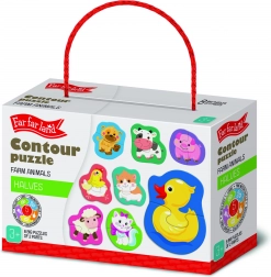 Szórakoztató körvonalas puzzle a legkisebbeknek tanyasi állatok motívumával. A csomag 8 önálló képet tartalmaz, képenként 2 darabbal – ideális az első kirakásokhoz és a finommotorika fejlesztéséhez. Egyszerű, két darabból álló kirakók, aranyos tanyasi állatok és játékos tanulás – mindez örömet szerez minden kisgyermeknek.