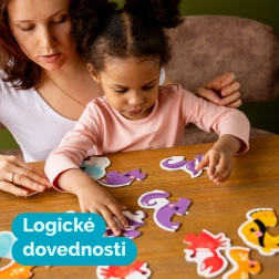 Fedezd fel a tanya világát egyszerű, körvonalas kirakókkal, amelyek kiválóak az első puzzle-élményekhez. A 8 kép mindegyike 2 masszív darabból áll, amelyek könnyen illeszkednek egymáshoz. A gyerekek gyakorolják a finommotorikát, a logikus gondolkodást és az állatok felismerését.