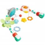 Forgó, csörgő és függő elemek reagálnak az érintésre, támogatják a fogást, és biztonságos rágókaként is szolgálhatnak az első fogacskákhoz.