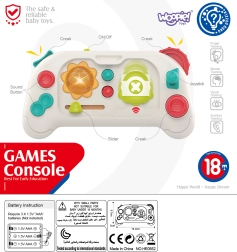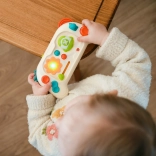A vezérlő közepén pop-it hatású gombok találhatók, amelyek kellemes tapintási visszacsatolást nyújtanak. A további kezelőszervek forognak vagy kattognak, a csúsztatható csengő könnyen mozgatható balra és jobbra, a zenélő gombok pedig dallamokat és hangokat indítanak. A vezérlő elemmel működik, így bárhol készen áll a játékra.