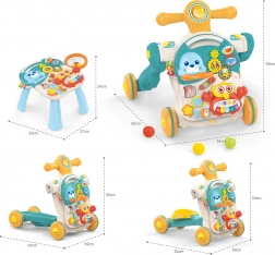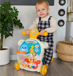 Ez a játék valódi meglepetések tárháza, amelyeket a gyermek önállóan fedezhet fel. Több funkció kombinációja egy játékban: járóka, roller, járgány és tanulóstal biztosítja, hogy a játék ne váljon unalmassá.