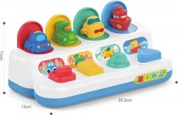 Ez a strapabíró, gondosan kidolgozott interaktív, felugró mechanizmusú játék 18 hónapos kortól végtelen szórakozást és tanulást kínál. A színes járművek a különféle vezérlőelemek aktiválására felbukkannak, azonnali sikerélményt adva és ösztönözve az ismételt próbálkozást.