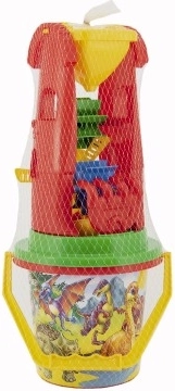 A vödör, a lapát, a gereblye és a formák segítségével várakat, alagutakat és homoksütiket építhettek. Minden könnyű, helytakarékos és egyszerűen hordozható.
